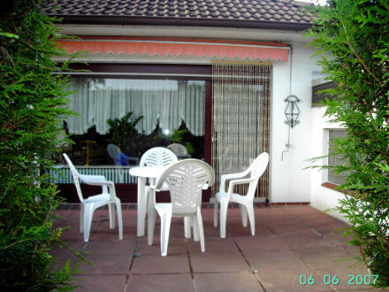 nicht einsehbare Terrasse mit Markise ist vom Wohnzimmer